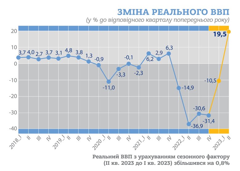 Таким чином, з початку повномасштабної війни зростання ВВП вперше зафіксовано саме у II кварталі 2023 року.