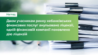 НБУ анулював ліцензії двом учасникам ринку небанківських фінпослуг