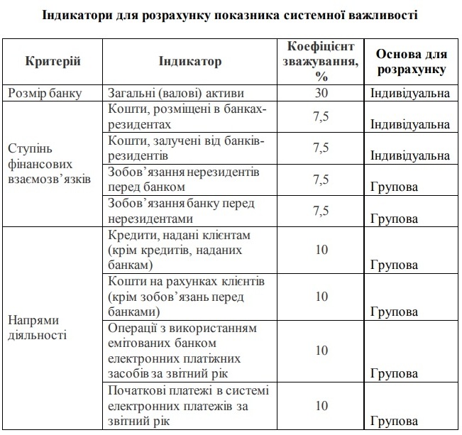 Сначала рассчитывается показатель системной важности банка с учетом трех критериев: размер банка, степень финансовых взаимосвязей и направления деятельности, в которые входят индикаторы с разным весом.