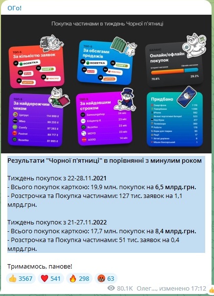 По его информации, за неделю «черной пятницы», продолжавшуюся 21-27.11.2022 клиенты mono обратились за кредитами (рассрочка и покупка частями)