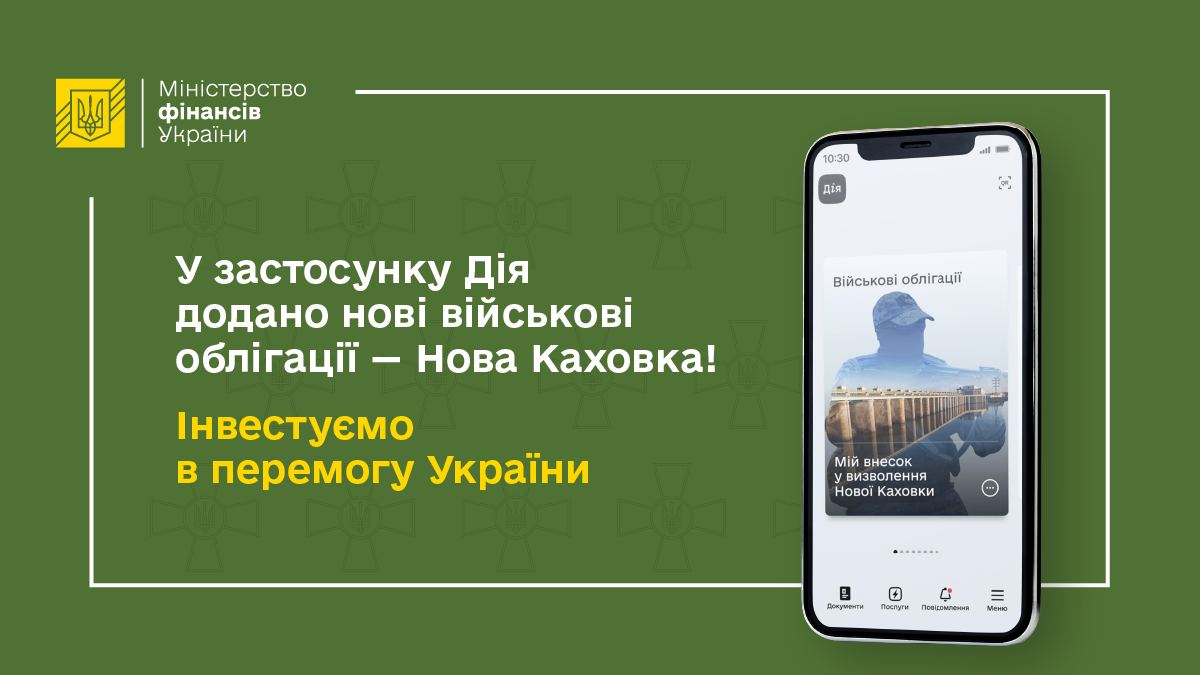"Вчера (20 июня)…Минфин выпустил новые военные облигации на сумму более 10 млрд гривен. Средняя ставка доходности на первичных аукционах по этим облигациям составляет 18,20%, а погашение по ним состоится 1 мая 2024 года. Такие военные ОВГЗ сегодня каждый гражданин может приобрести в приложении "Дія" под названием "Новая Каховка", – отмечают в ведомстве.