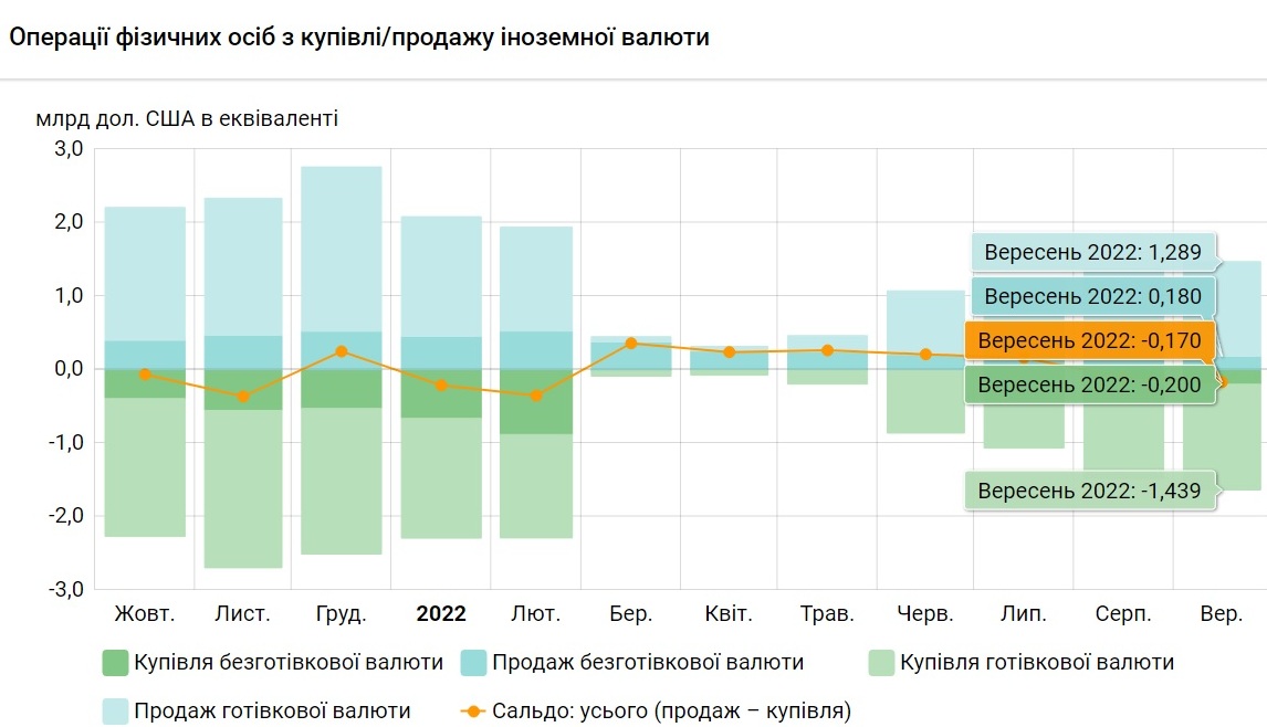 В частности, объемы покупки валюты физлицами превысили $1,6 млрд. Львиная доля этого объема ($1,4 млрд) была приобретена наличными в банках и обменных пунктах, а $200 млн – безналом с последующим размещением на банковские депозиты.