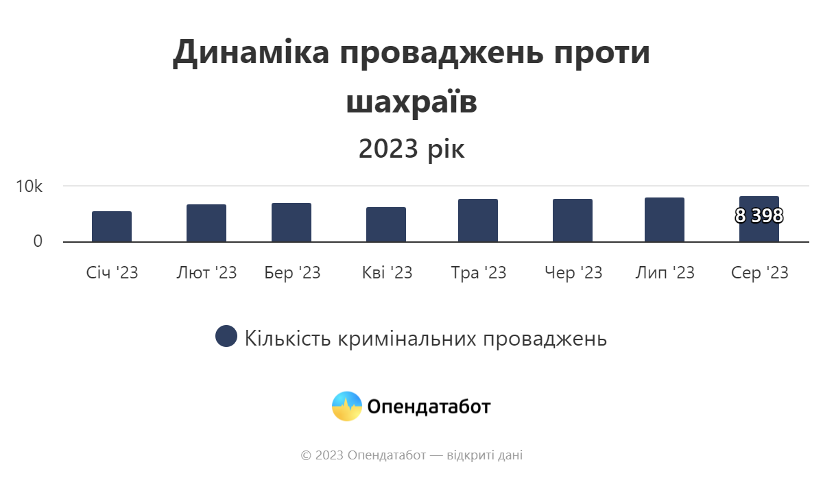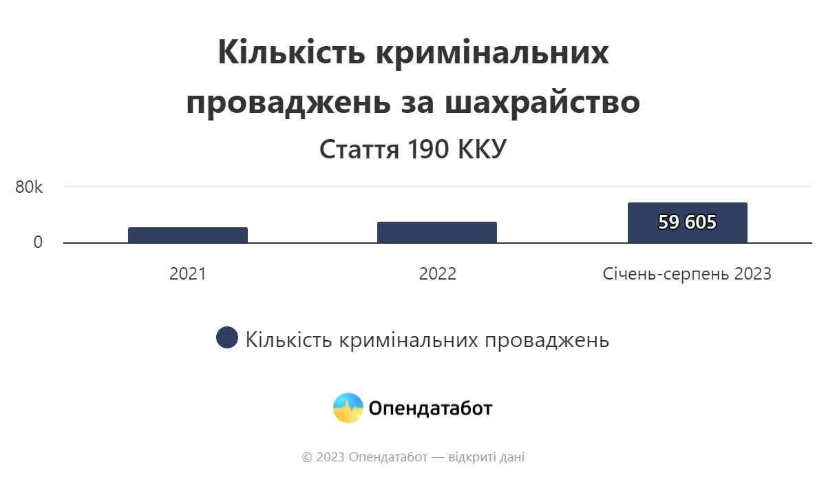 "Аномальная активность мошенников зафиксирована в Украине в 2023 году. В этом году было открыто почти 60 тысяч уголовных производств за мошенничество (статья 190 Уголовного кодекса) – больше всего за последние годы", – говорится в сообщении.