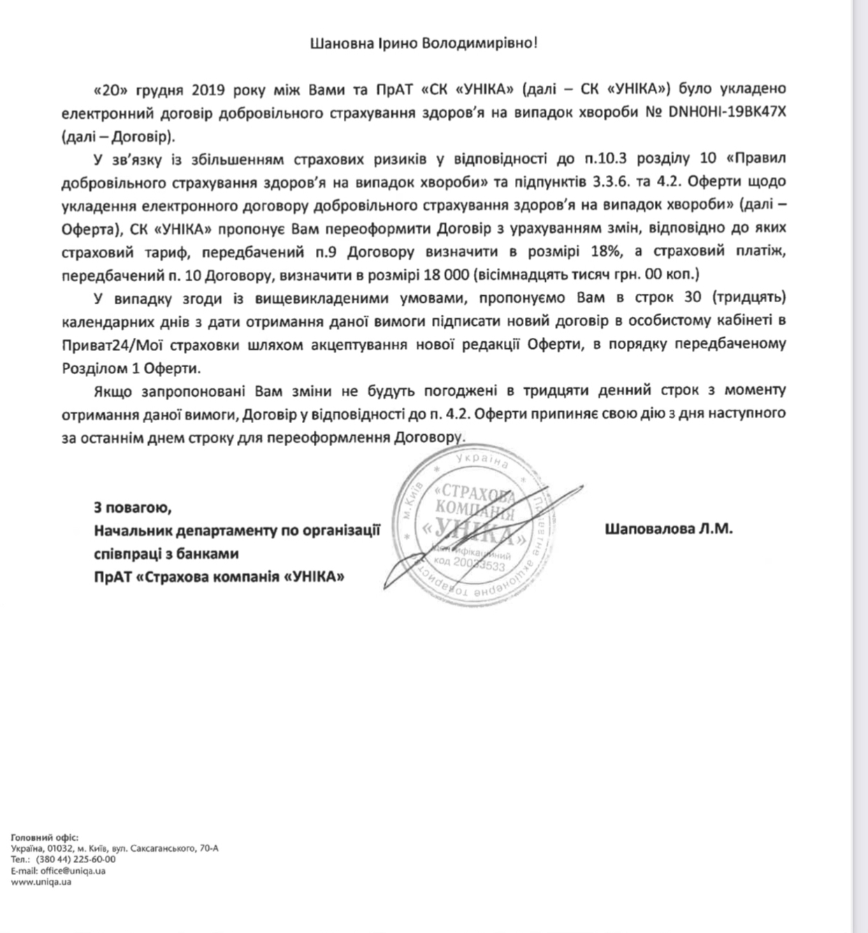 НЕ СТРАХУЙТЕ СЕБЕ І СВОЇХ РІДНИХ У ЦІЙ СТРАХОВІЙ КОМПАНІЇ . НЕ ВИКОНУЮТЬ СВОЇ ОБОВЯЗКИ, ГРОШІ ЗА СТРАХОВИЙ ВИПАДОК ОТРИМАТИ НЕ МОЖНА . А ПЛАТИМО 400 грн в місяць.